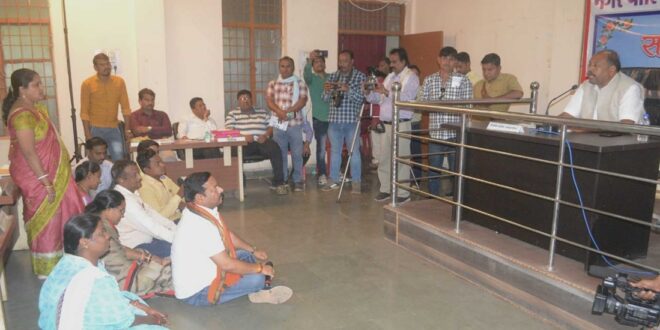 गुस्साए भाजपा पार्षद सभापति की आसंदी के सामने जमीन पर बैठ गए। सभापति ने बजट पुस्तिक के अध्ययन के लिए एक घंटे का समय दिया। वहीं महापौर निर्मल कोसरे, संतोष तिवारी, वेंकट रमना, मोहन साहू, शारदा लावेश मदनकर, मनीष वर्मा सहित कांग्रेस के सभी पार्षद बहुमत के आधार पर बजट पारित करने की मांग करते रहे।