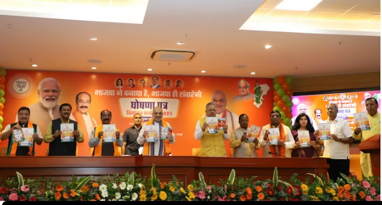 छत्तीसगढ़ में बीजेपी ने विधानसभा चुनावों के लिए अपना घोषणापत्र जारी किया. घोषणा पत्र समिति के संयोजक विजय बघेल बोल ने बताया कि ये तीन महीने में तैयार हुआ. 3 अगस्त से 3 नवम्बर के बीच इसे तैयार किया गया है. इसमें 35 सदस्य थे. समाज के सभी वर्गों से राय ली गई है. 2 लाख से ज़्यादा सुझाव आए. केंद्रीय गृहमंत्री अमित शाह ने घोषणा पत्र यानी संकल्प पत्र का लोकार्पण किया.