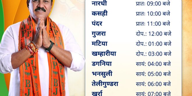 पाटन | पाटन विधानसभा क्षेत्र क्रमांक 62 मण्डल में जन आशीर्वाद कार्यक्रम में विजय बघेल bjp प्रत्याशी की रैली के माध्यम से मतदाताओं से मुलाकात करेंगे|