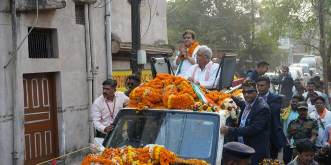भिलाई: छत्तीसगढ़ के मुख्यमंत्री भूपेश बघेल जी ने आज चुनाव प्रचार के अंतिम दिन, दुर्ग जिला के सभी विधान सभा क्षेत्रों में रोड शो किया । वैशाली नगर विधान सभा मे कांग्रेस चुनावी प्रचार खूब जोर शोर से किया गया। सोशल मिडिया से लेकर प्रचार के हर क्षेत्र में कांग्रेस अपने सभी प्रतिद्वंदियों से आगे नजर आया। वैशाली नगर विधान सभा के कांग्रेस उम्मीदवार मुकेश चन्द्राकर के चुनाव प्रचार के अंतर्गत जलेबी चौक कैम्प 1 भिलाई से रोड शो किया जहां क्षेत्र की जनता ने उनका भारी स्वागत किया मुख्यमंत्री ने मुकेश चन्द्राकर को अपनी साथ गाड़ी में साथ लेकर विधान सभा क्षेत्र के मतदाताओं को कांग्रेस को वोट करने की अपील की।