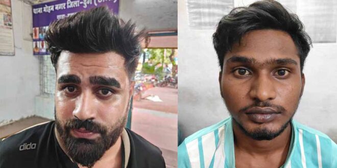 दुर्ग। मामले का संक्षिप्त विवरण इस प्रकार है कि दिनांक 15.09.2024 को प्रार्थी लक्ष्मीकांत रावटे निवासी पुलिस लाईन दुर्ग ने रिपोर्ट दर्ज कराया कि 3 बजे किया कंपनी के कार क्रमांक CG 07 CM 8808 में सवार दो व्यक्ति के द्वारा पिस्टल दिखाकर पैसा एवं मोबाई्रल की मांग की गई व धमकी दिया गया, जिस पर थाना मोहन नगर जिला दुर्ग में अपराध क्र. 449/24 धारा 309(5) बीएनएस 2023 पंजीबद्ध किया गया। विवेचना के दौरान आरोपी सहज अब्बी उर्फ आशु पिता संजू अब्बी उम्र 26 साल निवासी दीपक नगर, दुर्ग एवं यज्ञदत्त मंडावी पिता दिलीप कुमार उम्र 19 साल निवासी तालपुरी थाना भिलाई नगर को पकड़ा गया। जिसकी तलाशी पर एक लाईटर पिस्टलनुमा जो पिस्टल की तरह काक होता मिला तथा उक्त कार को जब्त किया गया। विवेचना पर आरोपियों द्वारा अपराध घटित करना पाये जाने से विधिवत दिनांक 15.19.2024 को गिरफ्तार कर ज्यूडिशियल रिमाण्ड पर केंद्रिय जेल निरूद्ध किया गया।