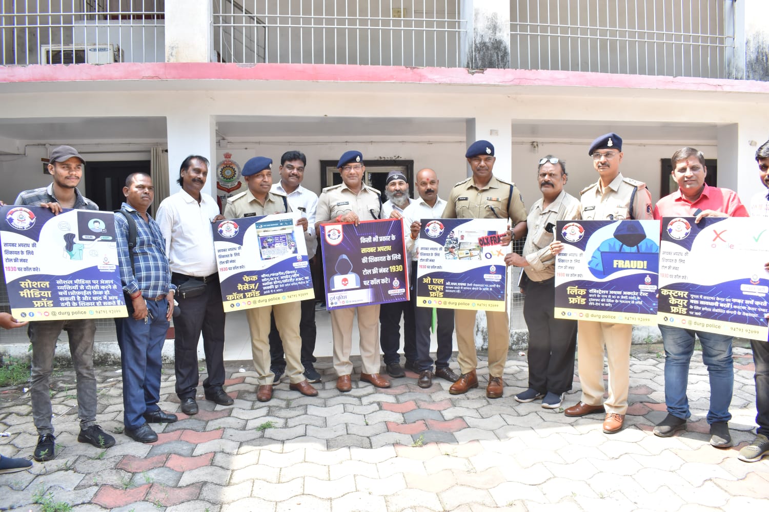 * दुर्ग के सभी थाना/चौकी द्वारा अपने क्षेत्रों में सार्वजनिक स्थान, चौक चौराहों, वर्कशॉप, स्कूल/कॉलेजों में साइबर क्राइम के प्रति लोगो को पाम्पलेट वितरण कर बैनर पोस्टर के जरिये प्रचार-प्रसार कर जागरूक किया गया।