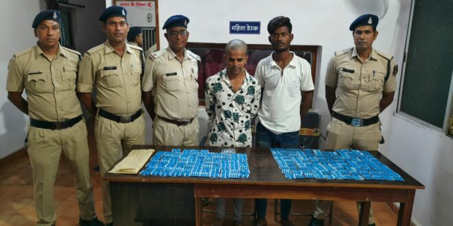 पुलिस महानिरीक्षक दुर्ग रेज श्री रामगोपाल गर्ग, पुलिस अधीक्षक दुर्ग श्री जितेन्द्र शुक्ला के मार्गदशन में एवं अति.पुलिस अधीक्षक (शहर) दुर्ग सुखनंद राठौर, नगर पुलिस अधीक्षक भिलाई नगर श्री सत्यप्रकाश तिवारी के नेतृत्व में चलाये जा रहे संकल्प अभियान एक युद्ध नशे के विरूद्ध के तहत लगातार अवैध मादक पदार्थ कारोबार के खिलाफ कार्यवाही की जा रही है व संदिग्धों पर निगाह रखी जा रही थी कि इसी क्रम में दिनांक 21.10.2024 को मुखबीर से सूचना मिला कि नेवई डेम इमली पेड के नीचे दो व्यक्ति R15 मोटर सायकल में 02 नग कपडे के थैला में नशीली गोली विक्रय करने के लिये रखा है कि सूचना पर थाना प्रभारी नेवई के निर्देशन में टीम गठित कर तत्काल वरि0 अधिकारियों को सूचना से अवगत कराकर हमराह स्टाफ व गवाहों के मौके पर पहुंचे जहां दो व्यक्ति पुलिस को देखकर भागने लगा जिसे घेराबंदी कर पकडकर नाम पता पूछने पर अपना नाम 01 अमन निषाद पिता सुरेन्द्र निषाद उम्र 20 साल साकिन शिव पारा स्टेशन मरोदा थाना नेवई 02 हुकेश कुमार उर्फ हुक्कु पिता डेरहा राम साहू उम्र 25 साल साकिन स्टेशन मरोदा बजरंग पारा थाना नेवई का होना बताया। जिनका गवाहो के समक्ष तलाशी लेने पर हुकेष उर्फ हुक्कु साहू के कब्जे से दो नग कपडे के थैला में 1504 नग SPAS-TRASCEN-PLUS कैप्सूल एवं अमन निषाद के कब्जे से R15 मोटर सायकल क्रमांक सीजी 07 सीसी 0497 एवं कैप्सूल विक्रय रकम 200 रू नगदी मिला, मौके पर औषधि निरीक्षक दुर्ग को सूचना दिया गया जो मौके पर उपस्थित हुये,जो उक्त कैप्सूल को ट्रामाडोल युक्त नशीली होना बताये।