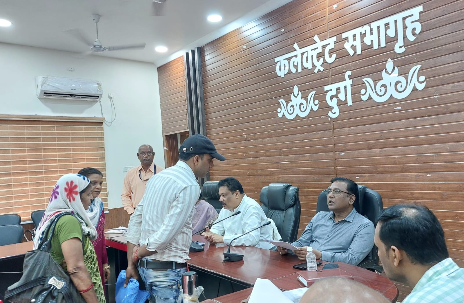 दुर्ग 4 नवम्बर 2024/ कलेक्टर सुश्री ऋचा प्रकाश चौधरी के निर्देशन में आज एडीएम श्री अरविंद एक्का, अपर कलेक्टर श्री विरेन्द्र सिंह एवं संयुक्त कलेक्टर श्रीमती लता उर्वशा ने जनदर्शन में बड़ी संख्या में पहुंचे लोगों से मुलाकात कर उनकी समस्याएं सुनी। उन्होंने जनदर्शन में पहुंचे सभी लोगों की समस्याओं को गंभीरता से सुना और समुचित समाधान एवं निराकरण करने संबंधित विभागों को शीघ्र कार्यवाही कर आवश्यक पहल करने को कहा। जनदर्शन में आज 40 आवेदन प्राप्त हुए।