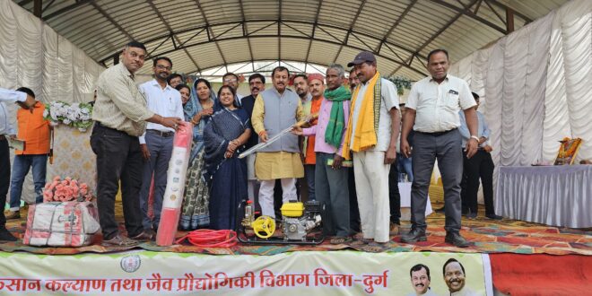 अंत में मुख्य अतिथि सांसद श्री बघेल द्वारा कृषकों को कृषि यंत्र, केसीसी, नर्सरी पौध, मत्स्य पालक को आइस बॉक्स का वितरण किया गया। कार्यक्रम में श्रीमती हर्षा लोकमणी चंद्राकर सदस्य जिला पंचायत, श्रीमती राम बाई सिन्हा अध्यक्ष जनपद पंचायत पाटन एवं अन्य जन प्रतिनिधि, कृषि, उद्यानिकी, मत्स्य, पशुधन, सहकारिता विभाग, क्रेडा, स्वास्थ्य विभाग के मैदानी अधिकारी, कर्मचारी एवं लगभग 300 से अधिक कृषक उपस्थित रहे।