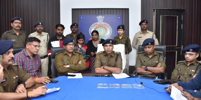 भिलाई। शहर के थाना खुर्सीपार, वैशाली नगर एवं सुपेला क्षेत्र में हो रही चैन स्नैचिंग की घटना को गंभीरता से लेते हुए श्रीमान् पुलिस अधीक्षक जितेन्द्र शुक्ला (भा.पु.से.) के द्वारा त्वरित कार्यवाही करते हुए आरोपियों की शीघ्र पतासाजी एवं माल बरामदगी हेतु निर्देश प्राप्त हुए थे, जिसके परिपालन में अतिरिक्त पुलिस अधीक्षक (शहर) श्री सुखनंदन राठौर (रापुसे), उप पुलिस अधीक्षक (क्राईम) श्री हेम प्रकाश नायक, श्री सत्यप्रकाश तिवारी नगर पुलिस अधीक्षक, भिलाई नगर, श्री हरिश पाटिल नगर पुलिस छावनी के मार्गदर्शन में एसीसीयू प्रभारी निरीक्षक तापेश नेताम, एवं श्री राजेश मिश्रा थाना प्रभारी सुपेला, श्री अबर सिंह थाना प्रभारी खुर्सीपार, श्री अमीत अडानी थाना प्रभारी वैशाली नगर के नेतृत्व में एसीसीयू एवं थानों की एक संयुक्त टीम गठित कर टीम को कार्यवाही हेतु लगाया गया था।