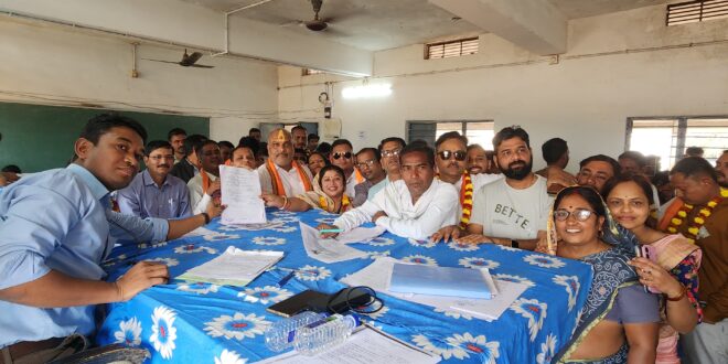 इन्हों ने भारतीय जनता पार्टी से नगर पंचायत अध्यक्ष पद हेतु भारतीय जनता पार्टी अधिकृत प्रत्याशी के रूप में सरस्वती नरेन्द्र साहू व पार्षद पद हेतु अधिकृत प्रत्याशी वार्ड 01 मोतिम ठाकुर वार्ड 02 सोमेन्द्र सोनू राजपूत 03 सुरेन्द्र वर्मा,04,लक्ष्मीनारायण साहू,वार्ड05 सतीश कुमार चंद्राकर, वार्ड 06लता सोनवानी वार्ड 07 भीमसेन सिन्हा,08 तेज बाई सिन्हा, वार्ड 09 चेतन चिंटू सिन्हा वार्ड 10 खूबी राम साहू, वार्ड 11 नारायण देशमुख, वार्ड 12 अनीता नीलम गड़े, वार्ड 13 गीतेश कुमार ठाकुर, वार्ड 14 संगीता रजक वार्ड 15 सुनीता गौतम चंद्राकर ने आज नामांकन दाखिल किया।