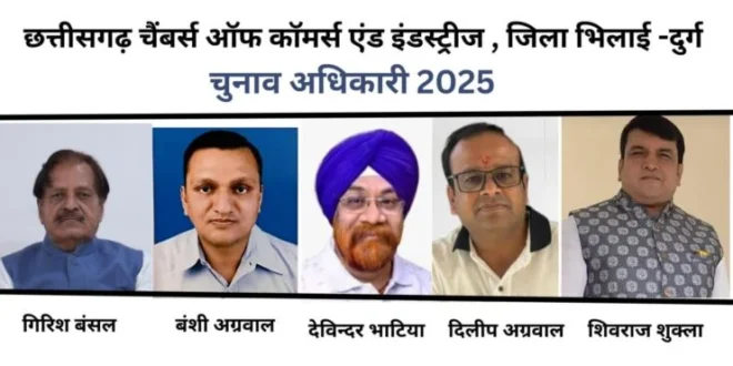 भिलाई-दुर्ग / छत्तीसगढ़ चैंबर ऑफ कॉमर्स एंड इंडस्ट्रीज ने आगामी चुनाव प्रक्रिया को निष्पक्ष और पारदर्शी ढंग से संचालित करने के लिए पांच प्रतिष्ठित व्यक्तियों को चुनाव निर्वाचन अधिकारी के रूप में नियुक्त किया है। इस नियुक्ति के तहत गिरीश बंसल, बंशी अग्रवाल, देविंदर सिंह भाटिया, शिवराज शुक्ला और दिलीप अग्रवाल को चुनाव प्रक्रिया की देखरेख और संचालन का जिम्मा सौंपा गया है।