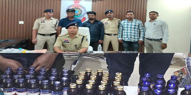 टीम द्वारा नशे के कारोबारियों पर सतत् निगाह रखी जा रही थी, विशेष सूत्र भी लगाये गये थे। जेल से रिहा हुये पूर्व के आदतन नशे के कारोबारियों पर निगाह रखी जा रही थी। इसी दौरान पुलिस टीम को विशेष सूत्रों से पता चला कि नितेश सिंह पिता बाबू नाथ सिंह, निवासी खुर्सीपार जो स्टेशन रोड दुर्ग से नशीली दवाई अवैध रूप से परिवहन कर ले जा रहा है कि सूचना पर गठित टीम द्वारा त्वरित कार्यवाही करते हुये नितेश सिंह को राजेन्द्र प्रसाद चौक दुर्ग में घेराबंदी कर पकड़ा गया जिसकी तलाशी लेने पर प्रतिबंधित नशीली सीरप CODEINE PHOSPHATE CHLORPHENIRAMINE MALEAT AND SODIUM CITRATE COUGH LINCTUS CHOCO कुल 23 नग बॉटल कीमती 4048 रूपये मिला जिसे कब्ज पुलिस लिया गया एवं नितेश सिंह से जप्त नशीली दवाई के संबंध में पूछताछ करने पर देवा भगत फार्मेसी स्टेशन रोड दुर्ग से खरीदना बताया आरोपी नितेश के बताये जाने पर टीम द्वारा मौके पर औषधी निरीक्षक दुर्गेश्वारी साहू को बुलाया गया जिनकी उपस्थिति में भगत फार्मेसी स्टेशन रोड दुर्ग में रेड कार्यवाही की गई रेड कार्यवाही पर प्रतिबंधित नशीली सिरप एवं टेबलेट WYKAREX-CD CODEINE PHOSPHATE CHLORPHENIRAMINE MALEAT AND SODIUM CITRATE COUGH LINCTU सीरप कुल 13 नग बॉटल कीमती 2275 रूपये, ONEREX CODEINE PHOSPHATE AND TRIPRODIDINE HYDROCHLORIDE SYRUP सीरप कुल 20 नग बॉटल कीमती 3900 रूपये, ALPRAZOLAM TABLETS IP 0-5 MG कुल 30 नग टेबलेट कीमती 73 रूपये, SPAS PROX CAPSULES टेबलेट कुल 68 नग कीमती 612 रूपये, ETIZOLAM TABLETS IP 0-5 MG टेबलेट कुल 30 नग एवं CONTRAMAL SR -100 टेबलेट कुल 20 नग कीमती 678 रूपये एवं बिक्री रकम 4050 रूपये जुमला कीमती 15636 रूपय को देवा भगत फार्मेसी के संचालक अजय देवांगन से जप्त किया गया है। आरोपियों के विरूद्ध मौके पर विधिवत कार्यवाही की गई अग्रिम कार्यवाही थाना मोहन नगर से की जा रही है एवं आरोपी के फार्मेसी लाइसेंस निरस्त करने की कार्यवाही हेतु प्रतिवेदन भेजा जा रहा है।