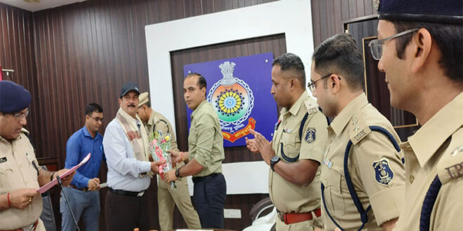 आज नियंत्रण कक्ष, भिलाई नगर में पुलिस विभाग से सेवानिवृत्त हुए 1-उप पुलिस अधीक्षक श्री संजय पुंढीर, 2- उप निरीक्षक श्री राजकरण सिंह, 3-प्रधान आरक्षक 1240 परसराम सिन्हा, 4-प्रधान आरक्षक 624 नीलकंठ नेताम का सम्मान/विदाई समारोह का आयोजन किया गया। कार्यक्रम के प्रारंभ में श्री जितेन्द्र कुमार शुक्ला, भापुसे., पुलिस अधीक्षक, दुर्ग के द्वारा सेवानिवृत्त हो रहे सभी अधिकारी/कर्मचारियों एवं उनके परिवार के सदस्यों का पुष्पगुच्छ दिया जाकर सम्मानित किया गया। इसके पश्चात् सेवानिवृत्त हो रहे सभी अधिकारी/कर्मचारियों ने लगभग 35 से 40 वर्ष के सेवा के अपने अनुभव का साझा किये। सेवानिवृत्त होने वाले अधिकारी/कर्मचारियों को श्री जितेन्द्र कुमार शुक्ला, भापुसे. द्वारा उद्बोधन में कहा गया कि आप सभी सेवानिवृत्त हो रहे है, आपके पुलिस विभाग में पूर्ण क्षमता से इतने वर्षो तक किए गए कार्य के लिए मैं आपकी प्रशंसा करता हूँ और पुलिस विभाग की ओर से हार्दिक अभिनंदन करता हू उन्होंने कहा कि सेवानिवृत्त हो रहे सभी अधिकारी/कर्मचारियों ने जो अनुभव साझा किए है, और उन्होंने जो बात कही है वह पुलिस विभाग के लिए प्रेरणास्वरूप है। हम सभी एक परिवार के रूप में है और जब कभी भी पुलिस विभाग से सेवानिवृत्त हो रहे अधिकारी/कर्मचारियों को हमारी आवश्यकता होगी हम सदैव मदद् के लिए तत्पर रहेगें। श्री जितेन्द्र कुमार शुक्ला, भापुसे. द्वारा सेवानिवृत्त हो रहे सभी अधिकारी/ कर्मचारियों एवं उनके परिवार के सदस्यों का शाल एवं श्रीफल भेंट कर सम्मानित किया गया और उनके उज्जवल भविष्य की कामना की गई। उक्त कार्यक्रम के दौरान श्री सुखनंदन राठौर अतिरिक्त पुलिस अधीक्षक (शहर) जिला-दुर्ग, श्री अभिषेक झा अति.पुलिस अधीक्षक (ग्रामीण) जिला दुर्ग, सुश्री ऋचा मिश्रा अति.पुलिस अधीक्षक (यातायात) जिला दुर्ग, श्री चिराग जैन, भापुसे. नगर पुलिस अधीक्षक दुर्ग, श्री राहुल बंसल, परि. भापुसे, श्री सत्यप्रकाश तिवारी नगर पुलिस अधीक्षक भिलाई नगर, श्री हरीश पाटिल नगर पुलिस अधीक्षक छावनी, श्री चंद्र प्रकाश तिवारी उप पुलिस अधीक्षक (लाइन) जिला दुर्ग, श्री एलेक्जेंडर किरो, उप पुलिस अधीक्षक (मुख्यालय) जिला दुर्ग, श्री सदानंद विंध्यराज उप पुलिस अधीक्षक (यातायात) जिला दुर्ग श्री हेमप्रकाश नायक उप पुलिस अधीक्षक (क्राईम) जिला दुर्ग एवं समस्त थाना/चौकी प्रभारी, जिला दुर्ग तथा जिला विशेष शाखा, नियंत्रण कक्ष, आईयूसीएडब्ल्यू तथा रक्षित केन्द्र, दुर्ग के समस्त अधिकारी/कर्मचारी उपस्थित थे।