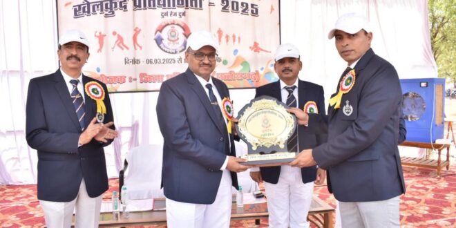 आज दिनांक 10.03.2025 को अंतर जिला पुलिस खेलकूद प्रतियोगिता-2025 का समापन प्रथम वाहिनी छसबल भिलाई के परेड ग्राउंड में सम्पन्न हुआ। समापन समारोह के मुख्य अतिथि श्री रामगोपाल गर्ग (भा.पु.से), पुलिस महानिरीक्षक, दुर्ग रेंज, दुर्ग एवं कार्यक्रम के अध्यक्ष श्री जितेन्द्र शुक्ला (भा.पु.से), पुलिस अधीक्षक, जिला दुर्ग थे।