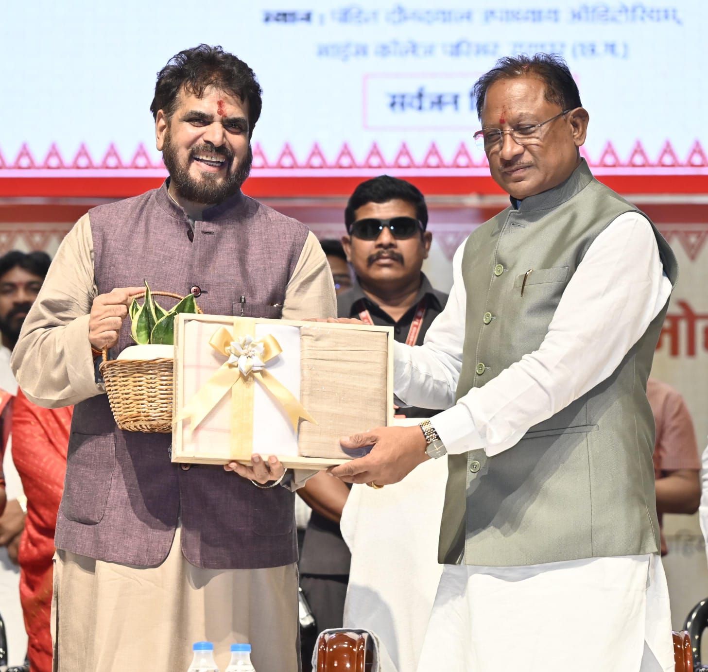 दुर्ग 16 अप्रैल 2025/ मुख्यमंत्री श्री विष्णुदेव साय राजधानी स्थित पंडित दीनदयाल उपाध्याय ऑडिटोरियम में छत्तीसगढ़ खादी तथा ग्रामोद्योग बोर्ड के नवनियुक्त अध्यक्ष श्री राकेश पांडेय के पदभार ग्रहण कार्यक्रम में शामिल हुए। उन्होंने श्री पांडेय को नए दायित्व के लिए बहुत-बहुत बधाई और शुभकामनाएं दीं। इस अवसर पर राष्ट्रीय बांस मिशन अंतर्गत 10 महिला हितग्राहियों को बांस टूल किट प्रदान की गई।