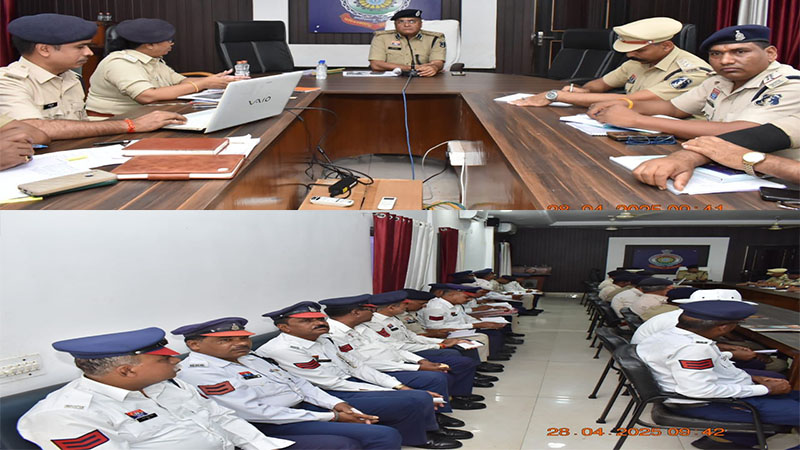 वरिष्ठ पुलिस अधीक्षक महोदय द्वारा आज मीटिंग में उपस्थित समस्त अधिकारी कर्मचारियों को ड्यूटी के दौरान साफ सुथरी वर्दी धारण करने,चालानी कार्यवाही के दौरान आम नागरिकों से मधुर व्यवहार करने, पीकहॉर्स के समय यातायात व्यवस्था बनाने, रात्रि के समय ड्यूटी के दौरान रिफ्लेक्टिव जैकेट पहने, समस्त अधिकारी को चालानी कार्यवाही के दौरान बॉडीवार्न कैमरा आवश्यक लगाने निर्देश दिए गए, साथ ही यातायात नियम का उल्लंघन करने वाले बिना हेलमेट दो पहिया वाहन चालक, बिना सीट बेल्ट लगाए चार पहिया वाहन चालक, दो पहिया वाहन में तीन सवारी, नो पार्किंग में खड़े वाहनों पर कार्यवाही तथा शराब सेवन वाहन चलाने वालों पर अधिक से अधिक कार्यवाही करने निर्देश दिए गए।