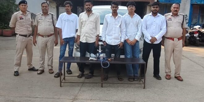 उक्त सूचना पर थाना सुपेला पुलिस द्वारा मौके पर दबिश दिया गया । इनोवा कार में अनिकेत नायक, ऋषभ कुमार जैन, दीपक गुप्ता, दुर्गेश कुमार घृतलहरे, आयुष सोनी मिले जिनके कब्जे से एक पुरानी इन्नोवा कार सीजी 07 बी.एच 9500, एक पुराना हुक्का पाईप जिसके दोनों किनारे लकड़ी का हुक्का लगा, एक पुराना स्टील का हुक्का पार्ट, एक पुराना कांच का मटकी, एक हुक्का पार्ट सीलबंद, एक हुक्का हर्बल फ्लेवर का पैकेट, एक पैकेट कोक एक पैकेट कोक खुला, एक पैकेट खुला पेपर को सभी आरोपीयान एक दूसरे का हुक्का आदान प्रदान कर पी रहे थे । आरोपियों के विरुद्ध अप.क. 543/2025 धारा 21(2) कोटपा एक्ट के तहत कार्रवाई कर इनके कब्जे से विधिवत जप्त किया गया । आरोपियों को गिरफ्तार कर अग्रिम कार्यवाही की जा रही है ।