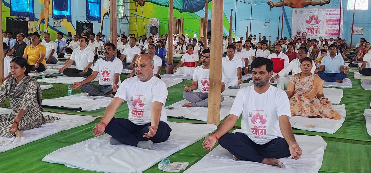 अंतर्राष्ट्रीय योग दिवस के 11 वें संस्करण के अवसर पर जिला प्रशासन द्वारा बालोद इंडोर स्टेडियम