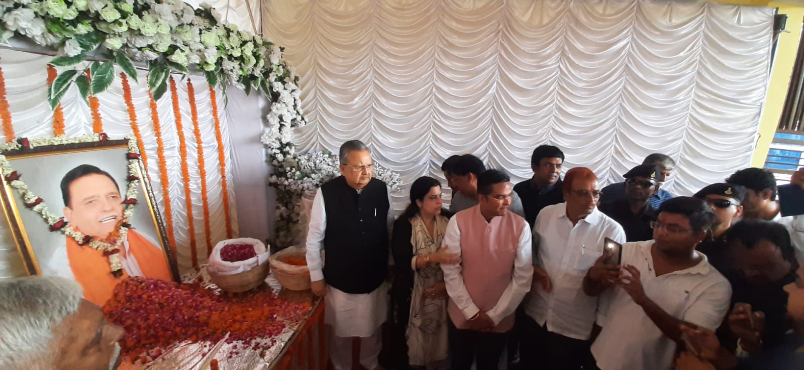 दुर्ग, 23 जून 2025/ विधानसभा अध्यक्ष डॉ. रमन सिंह आज रामनगर, गायत्री मंदिर मैदान भिलाई पहुंचे। वे यहां पर वैशाली नगर विधानसभा क्षेत्र के पूर्व विधायक स्व. दाऊ विद्यारतन भसीन जी के पुण्य तिथि पर आयोजित कार्यक्रम में शामिल हुए। उन्होंने स्व. भसीन जी के छायाचित्र पर पुष्पांजली अर्पित कर श्रद्धांजली दी। इस अवसर पर उन्होंने स्व. भसीन जी के व्यक्तित्व एवं कृतित्व पर प्रकाश डाला। कार्यक्रम में सांसद श्री विजय बघेल, विधायक श्री रिकेश सेन, पूर्व विधानसभा अध्यक्ष श्री प्रेमप्रकाश पाण्डेय एवं गणमान्य नागरिक भी सम्मिलित हुए।