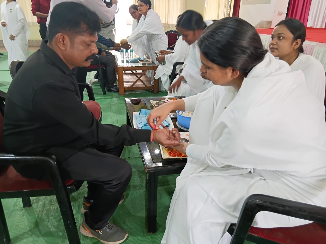वरिष्ठ राजयोग शिक्षिका ब्रह्माकुमारी प्राची दीदी ने बताया कि हम श्रेष्ठ संकल्प द्वारा परमात्मा की राखी आप सभी भाइयों को बांधते हैं जो हमारी रक्षा करेगी।