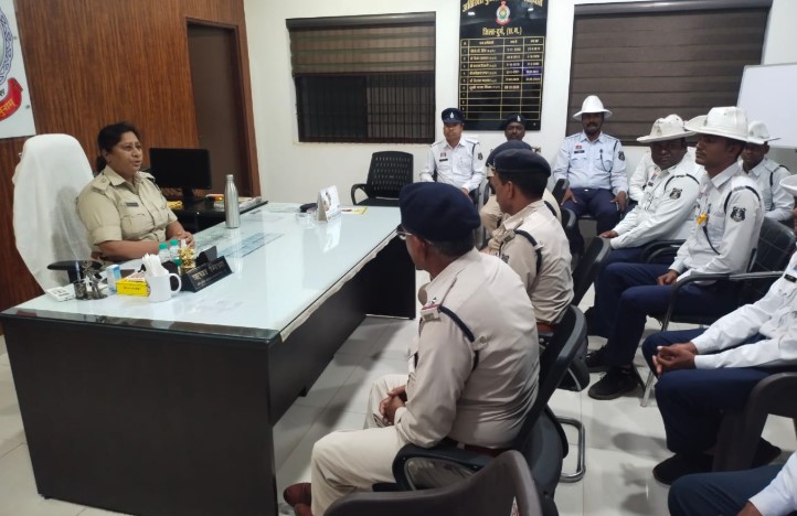 नेहरू नगर, दुर्ग स्थित यातायात कार्यालय में अतिरिक्त पुलिस अधीक्षक (यातायात), दुर्ग की अध्यक्षता में बैठक आयोजित की गई। इस बैठक में महोत्सव के दौरान यातायात प्रबंधन, मार्ग विचलन योजना, भीड़ नियंत्रण व्यवस्था तथा पार्किंग प्रबंधन पर विस्तृत विचार-विमर्श किया गया। उपस्थित अधिकारियों को आवश्यक दिशा-निर्देश प्रदान किए गए, ताकि त्योहार अवधि में आमजन की सुरक्षा तथा यातायात की सुगमता सुनिश्चित की जा सके।