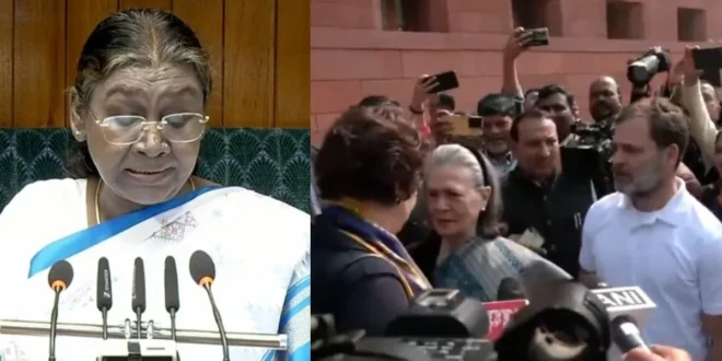बजट सत्र के पहले दिन भारत की राष्ट्रपति द्रौपदी मुर्मू ने संसद के दोनों सदनों लोकसभा और राज्यसभा के संयुक्त सदन को संबोधित किया। अपने संबोधन में राष्ट्रपति ने सरकार के विभिन्न कार्यों पर चर्चा की। हालांकि, राष्ट्रपति के संबोधन के खत्म होते ही राजनीतिक बयानबाजी फिर शुरू हो गई। कांग्रेस सांसद सोनिया गांधी और लोकसभा में नेता प्रतिपक्ष राहुल गांधी ने राष्ट्रपति के संबोधन को लेकर कुछ ऐसी बात कह दी जिससे सियासी घमासान शुरू हो गया है। भाजपा ने इस मामले में कांग्रेस पार्टी से माफी मांगने को कहा है।
