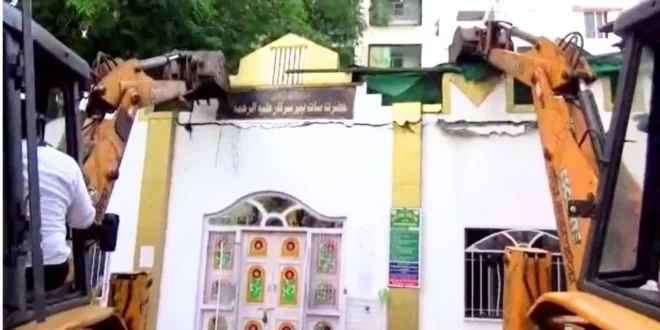 बुलडोजर से ढहाया जा रहा अवैध निर्माण