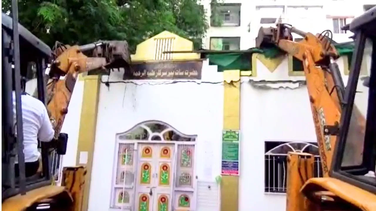 नासिक: रात को उड़ी अफवाह और भीड़ ने कर डाला पथराव, सुबह चल गया दरगाह पर बुलडोजर