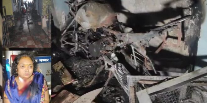 घर से धुंआ देख पुलिसवाले व तीन पड़ोसी दौड़े और धमाके की चपेट में आकर झुलस गए। धमाका इतना तेज था कि घर पर रखी बाइक, कूलर, टीवी और सारा सामान जलकर खाक हो गया।