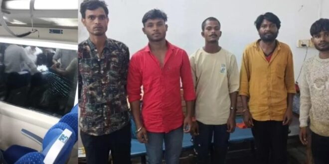 RPF के अधिकारी परवीन सिंह ने बताया है कि कल वंदे भारत ट्रेन जो 16 तारीख से चलने वाली है उसका ट्रायल रन था। महासमुंद से सुबह 7.10 पर ट्रेन निकली। 9 बजे के करीब बागबाहरा के पास कुछ असमाजिक तत्वों ने चलती गाड़ी पर पथराव कर दिया। ट्रेन में हमारी सपोर्टिंग पार्टी हथियार के साथ थी। उन्होंने सूचना दी। सूचना के बाद तुरंत एक टीम गई और उसने जांच की और पांच आरोपी पकड़े गए। पांच आरोपियों के नाम शिव कुमार बघेल, देवेंद्र कुमार, जीतू पांडे, सोनवानी और अर्जुन यादव है। ये पांचों बागबाहरा के हैं।