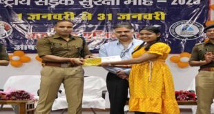दिनांक 31 जनवरी 2025 को सडक सुरक्षा माह के अंतिम दिन कला मंदिर सेक्टर 06 भिलाई में पुरूस्कार एवं सम्मान समारोह का आयोजन किया गया जिसमें सर्व प्रथम सुश्री ऋचा मिश्रा, अतिरिक्त पुलिस अधीक्षक, (यातायात) के द्वारा अपने प्रतिवेदन में इस एक माह के दौरान जो भी जागरूकता कार्यक्रम जैस-हेलमेट …