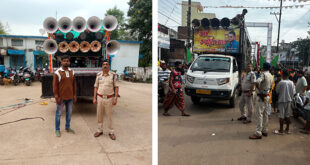 दुर्ग पुलिस द्वारा डी.जे. संचालकों का बैठक लिया जाकर आगामी त्यौहारों हारों एवं धार्मिक कार्यक्रमों को दृष्टिगत रखते हुए डीजे बजाने के संबंध संबंध में आवश्यक निर्देश दिया गया था किन्तु कुछ डीजे संचालको के द्वारा नियमो का पालन नहीं करते हुये गणेश विसर्जन कार्यक्रम के दौरान अपने वाहन में …