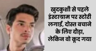 इंदौर। वैष्णव इंस्टीट्यूट आफ मैनेजमेंट कॉलेज में बीएससी के छात्र मयूर राजपूत ने तीसरी मंजिल से छलांग लगाकर आत्महत्या कर ली। इसके पूर्व मयूर ने इंस्टाग्राम स्टोरी पर सुसाइड नोट लिखा है। उसने लिखा कि वह अच्छा इंसान नहीं बन पाया, न अच्छा बेटा बन सका। द्वारकापुरी पुलिस ने मर्ग कायम …