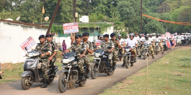 स्वीप रिसाली के तहत दुर्ग लोकसभा आम चुनाव में मतदाताओं को जागृत करने जिला स्तर पर अलग-अलग कार्यक्रम किए जा रहे है। शुक्रवार को दो घंटा से ज्यादा समय तक बाइक से वार्ड भ्रमण किया गया।अंत में निर्भीक मतदान के लिए शपथ और मानव श्रृंखला बनाकर मतदान करने का संदेश दिया गया।