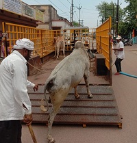 भिलाईनगर। नगर पालिक निगम भिलाई क्षेत्र में जो आवारा पशु रोड में, मार्केट में, मुख्य सड़को पर या अन्य सार्वजनिक स्थल पर घुमते हुए पाये जा रहे है उसे नगर निगम भिलाई के आवारा पशु पकड़ने वाले दल द्वारा पकड़कर गौठान में लाकर रखा जा रहा है। इसी तारत्मय में जोन-2 वैशाली नगर क्षेत्रांतर्गत निदान 1100 में प्राप्त शिकायतो के आधार पर आवारा सांड एवं पशुओ को पकड़ करके गौठान में लाया गया। नगर निगम भिलाई द्वारा बार बार समझाईस देने एवं चालानी कार्यवाही करने के बाद भी बहुत सारे पशुओ के मालिको द्वारा जानवरो के दुध निकाल लेने के बाद रोड में छोड़ देते है जिससे सड़क दुर्घटना होने की संभावना बनी रहती है। नगर निगम भिलाई द्वारा उसे रोकने के लिए हर संभव प्रयास किया जा रहा है। इस अभियान में तोड़फोड़ दस्ता अधिकारी बालकृष्ण नायडू, जोन-2 के सहायक राजस्व अधिकारी जगदीश तिवारी, दस्ता प्रमुख हरिओम गुप्ता अपने दल के सदस्यो के साथ मुस्दैती से इस कार्य में लगे है।