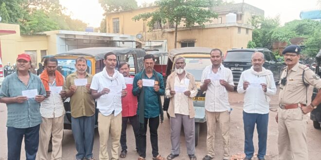 दुर्ग: जितेन्द्र शुक्ला, पुलिस अधीक्षक दुर्ग के द्वारा शहर की यातायात व्यवस्था को व्यवस्थित बनाये रखने के दिये गये निर्देश के परिपालन में एवं सतीष ठाकुर, संदानंद विध्यराज, उप पुलिस अधीक्षक (यातायात) के नेतृत्व मे आज दिनांक को यातायात दुर्ग जोन के द्वारा रेलवे स्टेशन एवं बस स्टैंड में क्षेत्र में नियमों का पालन न करने वाले ऑटो चालको के विरूद्ध कार्यवाही की गई जिसमें बिना वर्दी, बिना बीमा, ओवर लोड सवारी बैठाकर परिवहन करने वाले कुल-15 ऑटो चालको के विरूद्ध मोटर व्हीकल एक्ट की धाराओं के तहत कार्यवाही कर 05 ऑटो को जप्त किया गया एवं सभी ऑटो चालको को भविष्य हेतु समझाईस दी गई। इसी प्रकार सडक में बाधा उत्पन्न करने वाले नो पार्किग मे खडी दो पहिया वाहनों को क्रेन से उठाकर यातायात मुख्यालय लाया गया एवं चार पहिया वाहनो में लॉक लगाने की कार्यवाही की गई।