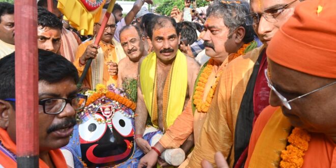 भिलाई; प्रभु जगन्नाथ की पवित्र रथ यात्रा के अवसर पर चारों तरफ हर्षोल्लास का माहौल था । सभी तरफ जय जयकार के बीच में भिलाई नगर विधायक देवेंद्र यादव महापौर नीरज पाल पहुंच करके पूजार्चना अर्चना किये, श्रद्धा पूर्वक रथ को खींचे