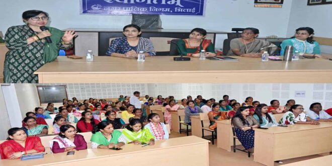 भिलाईनगर। नगर पालिक निगम भिलाई के मुख्य कार्यालय सभागार में महिला उत्पीड़न की कार्यशाला आयोजित की गई। निगम भिलाई से सुश्री दिप्ती साहू की अध्यक्षता में परियोजना कार्यालय भिलाई की परियोजना अधिकारी श्रीमती रचयिता नायडू, महिला एवं बाल विकास जिला दुर्ग की अधिकारी श्रीमती प्रीति बाला, अधिवक्ता उमा साहू की उपस्थिति में कार्यशाला आयोजित की गई। उपस्थित पदाधिकारियो द्वारा महिलाओ की सुरक्षा को लेकर विस्तृत चर्चा की गई एवं उन्हे बताया गया कि किस प्रकार से अपनी शिकायतो का निराकरण किया जा सकता है।