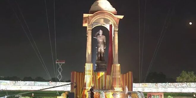 इंडिया गेट के समीप राष्ट्रनायक नेताजी सुभाष चंद्र बोस की 28 फुट ऊंची काले ग्रेनाइट से बनी मूर्ति के अनावरण के बाद प्रधानमंत्री मोदी ने कहा ‘गुलामी के समय यहां ब्रिटिश राजसत्ता के प्रतिनिधि की प्रतिमा लगी हुई थी। आज देश ने उसी स्थान पर नेताजी की मूर्ति की स्थापना करके आधुनिक, सशक्त भारत की प्राण प्रतिष्ठा भी कर दी है।’