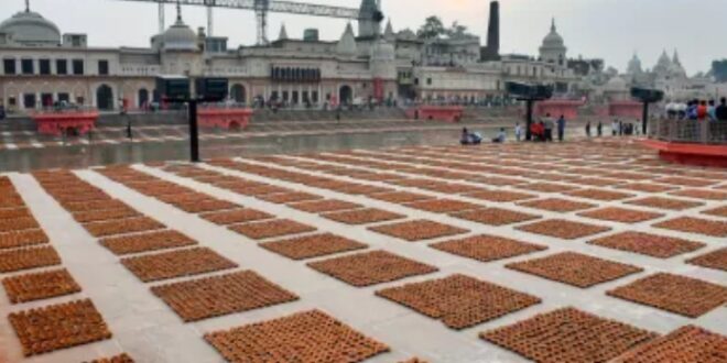 अयोध्या में आज भव्य दीपोत्सव की तैयारी चल रही है। भगवान राम की नगरी अयोध्या में आज 51 घाटों पर 21 लाख दिये जलाए जाएंगे। दीपोत्सव कार्यक्रम में 25 हजार से अधिक वॉलंटियर्स ने भाग लिया। बता दें कि इस कार्यक्रम में 50 से अधिक देशों को उच्चायुक्त और राजदूत शामिल होंगे। दीपोत्सव त्योहार मनाने को लेकर अयोध्या एक बार फिर वर्ल्ड रिकॉर्ड बनाने जा रहा है। दरअसल राम की पैड़ी के सभी 51 घाटों पर 24 लाख दीये जलाए जाएंगे। इस दौरान अयोध्या में सुबह 10 बजे झांकियां निकाली जाएंगी। इस बार की झांकियों में 4 देश और 24 प्रदेश की रामलीलाओं को मंचन होगा।
