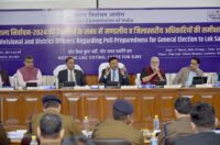 लखनऊः मुख्य निर्वाचन आयुक्त राजीव कुमार, निर्वाचन आयुक्त  अरूण गोयल एवं आयोग के वरिष्ठ अधिकारियों ने उत्तर प्रदेश भ्रमण के दूसरे दिन लोकसभा सामान्य निर्वाचन-2024 की तैयारियों को लेकर मण्डल और जिला स्तरीय अधिकारियों के साथ समीक्षा बैठक की। उन्होंने जनपद एवं मण्डल एवं मण्डल स्तरीय अधिकारियों से लोकसभा सामान्य निर्वाचन-2024 की तैयारियों एवं व्यवस्थाओं आदि के संबंध में जानकारी प्राप्त की।