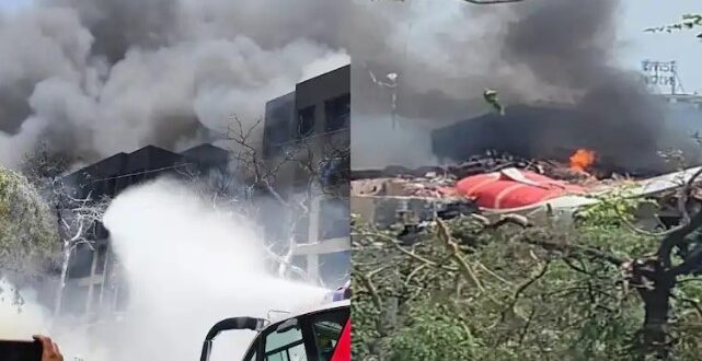 चारों तरफ अफरा-तफरी का माहौल है, लोग इस भयावह हादसे को देखकर भयभीत हैं और इधर उधर भाग रहे हैं. विमान पूरी तरह से क्षतिग्रस्त हो गया है. विमान का अधिकांश हिस्सा जलकर खाक हो चुका है. विमान जिस बिल्डिंग से लगकर गिरा है, वह भी क्षितग्रस्त हुई है.