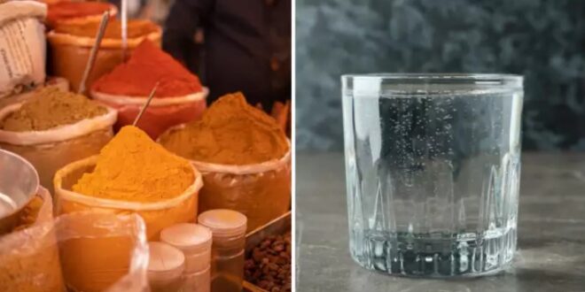 - एक गिलास पानी के अंदर 1 चम्मच हल्दी पाउडर डालें।