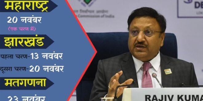 महाराष्ट्र में एक ही चरण में 20 नवंबर को 288 विधानसभा सीटों पर मतदान होगा। झारखंड में 2 चरणों में चुनाव का एलान किया गया है। पहली वोटिंग 13 नवंबर को दूसरे चरण की वोटिंग 20 नवंबर को की जाएगी। दोनों ही राज्यों में नतीजों का एलान 23 नवंबर को होगा।
