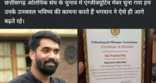 Read More »प्रशांत राय भारती कुश्ती संघ के महासचिव व छत्तीसगढ़ ओलंपिक संघ के कार्यकारिणी सदस्य चुने गए