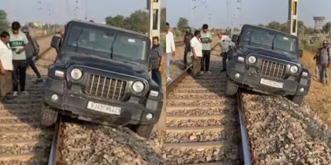 थार को रेलवे ट्रैक से कुदाने की कोशिश की