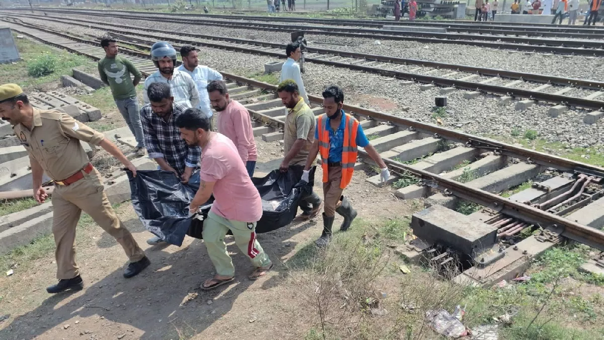 पनवड़िया रेलवे ट्रैक पर हुई घटना के बाद मृतकों के शवों को ले जाती पुलिस। जागरण