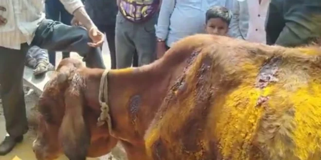 भिलाई। भिलाई के कैप-2 संतोषी पारा में गोवंश(गाय) को चाकू से गोदने का मामला सामने आया है। अज्ञात बदमाश द्वारा गोवंश पर 50 से ज्यादा वार किए। घटना की सूचना के बाद बजरंग दल व भाजपा कार्यकर्ता मौके पर पहुंचे और जमकर हंगामा किया।