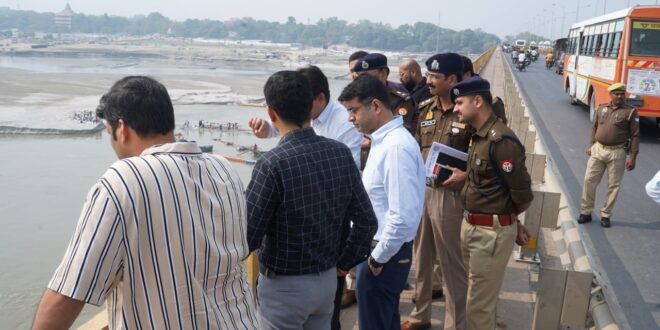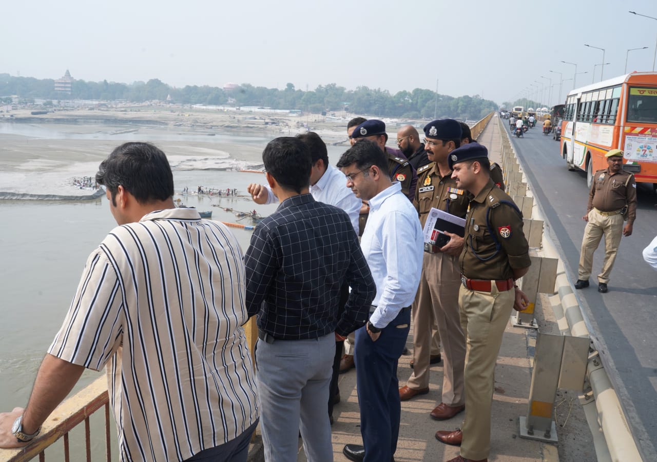 भ्रमण के दौरान निर्माणाधीन पुलों तथा घाटों की तैयारियों की समीक्षा की गयी।