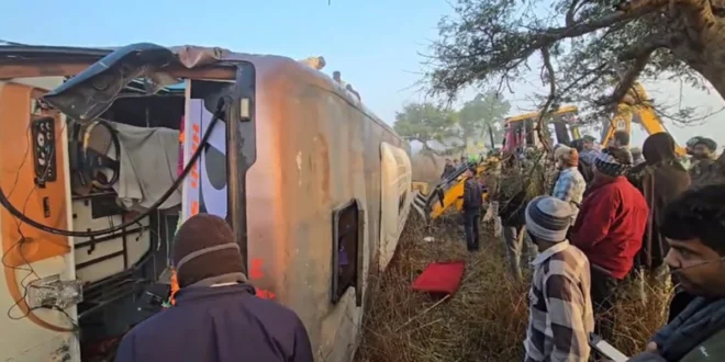 सुसनेर, आगर-मालवा। रविवार सुबह 6:30 बजे सुसनेर थाना इलाके के गणेशपुरा जोड़ गांव के पास सड़क हादसा हो गया। घने कोहरे की वजह से अज्ञात वाहन से टकराकर स्लीपर कोच बस पलट गई। हादसे में 17 यात्री घायल हो गए। इसमें एक डेढ़ साल का बच्चा और उसके पिता भी बस के नीचे फंस गए थे।
