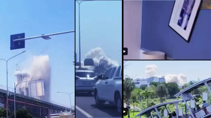 बैंकॉक: म्यांमार और थाईलैंड में आए खतरनाक भूकंप से भारी तबाही मचने की आशंका है। थाईलैंड से खतरनाक तस्वीरें सामने आ रहे हैं। थाईलैंड की राजधानी बैंकॉक से एक वीडियो सामने आया है, जिसमें एक बहुमंजिला इमारत को धड़ाम से जमीन पर गिरते हुए देखा गया है। नेशनल सेंटर फॉर सीस्मोलॉजी ने बताया है कि शुक्रवार को म्यांमार और थाईलैंड में रिक्टर पैमाने पर 7.2 तीव्रता का खतरनाक भूकंप आया है। भूकंप पूरे देश में झटके महसूस किए गए। दिल्ली एनसीआर तक भूकंप के झटके महूसक किए गये हैं। सबसे खतरनाक बात ये है कि भूकंप का केन्द्र जमीन से सिर्फ 10 किलोमीटर अंदर था, जिससे भारी तबाही की आशंका है।